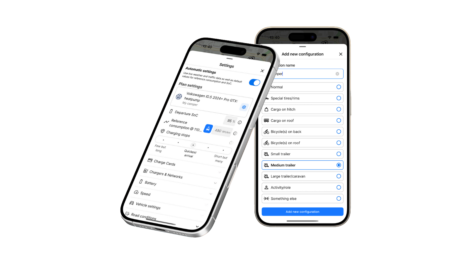 Are you planning to drive a camper trailer this summer? ABRP now includes built-in consumption models for common accessories through our vehicle configurations feature. Once you begin your journey and provide real-time data, we will adjust the model to fit your specific setup even better.